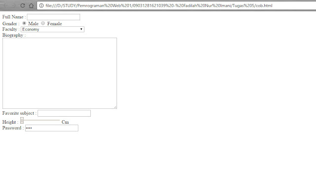 - Based on the 4th instruction, use textarea tag for adding a paragraph about your biography. This tag has 2 properties inside it which determine the size (rows for the width and cols for the height of textarea).